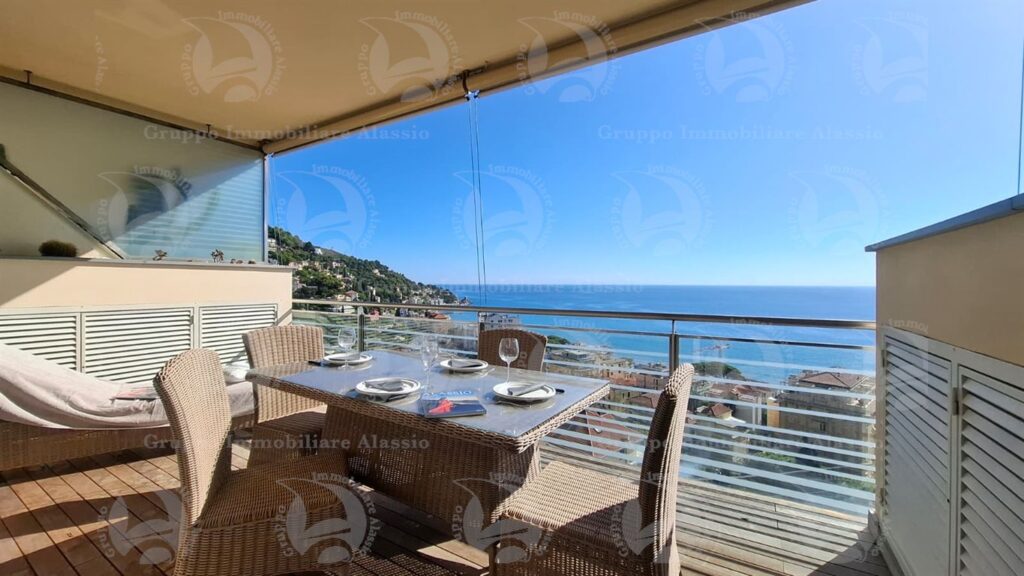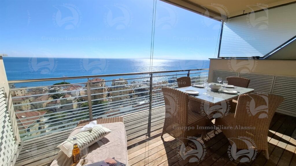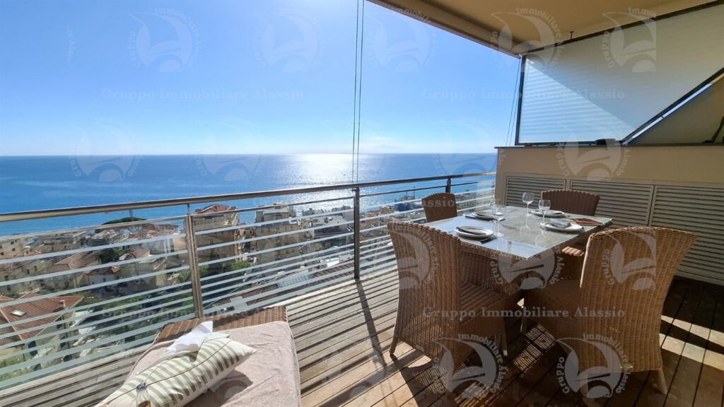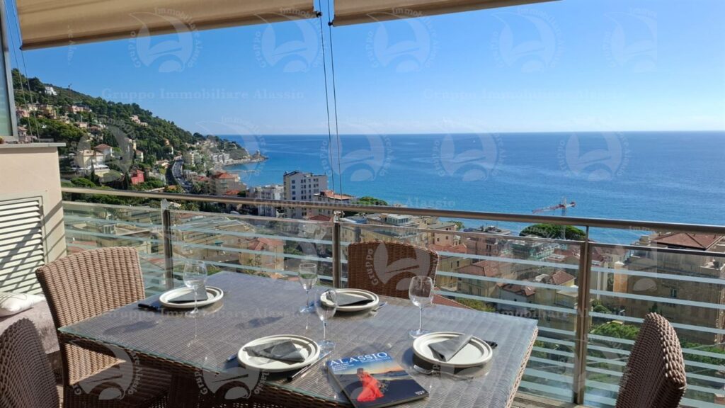 Alassio, primissima collina di levante, proponiamo questo esclusivo bilocale con vetrate vista mare ed un grande terrazzo.