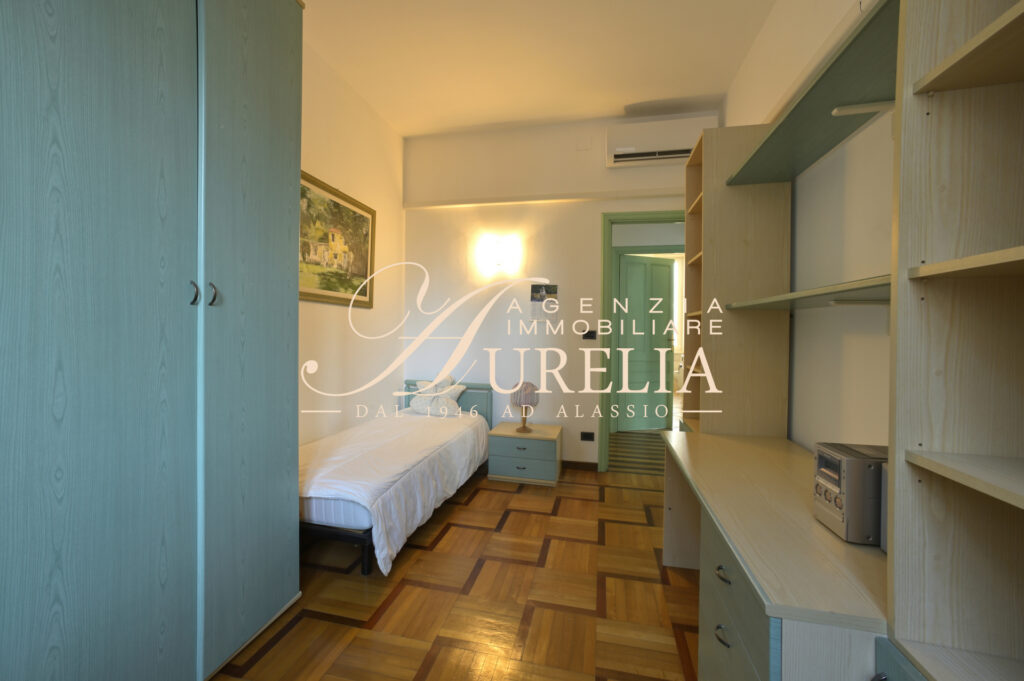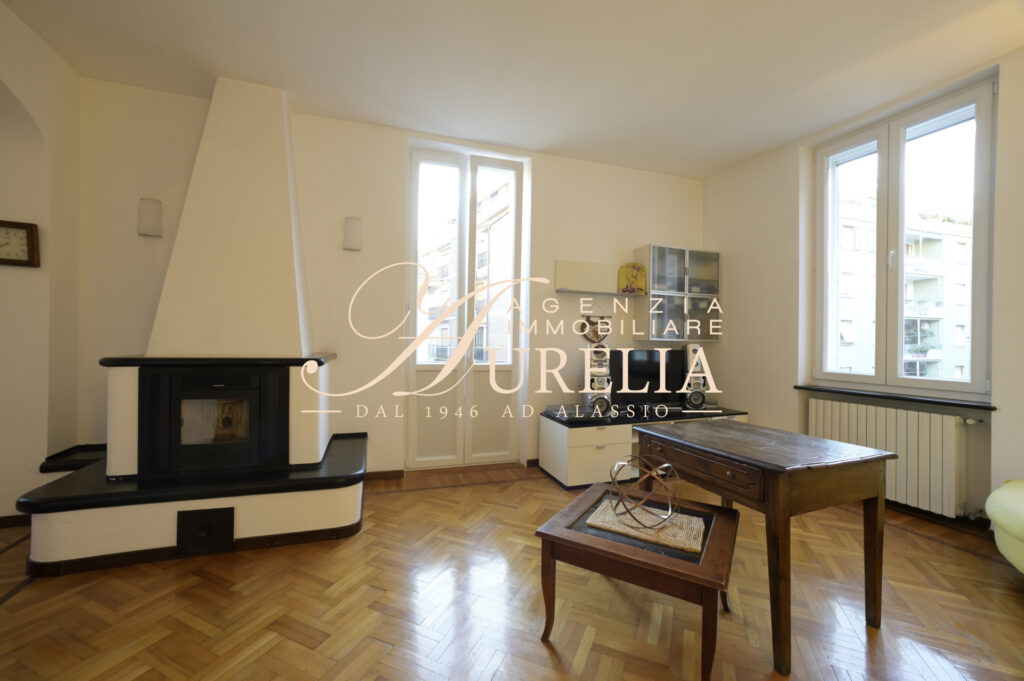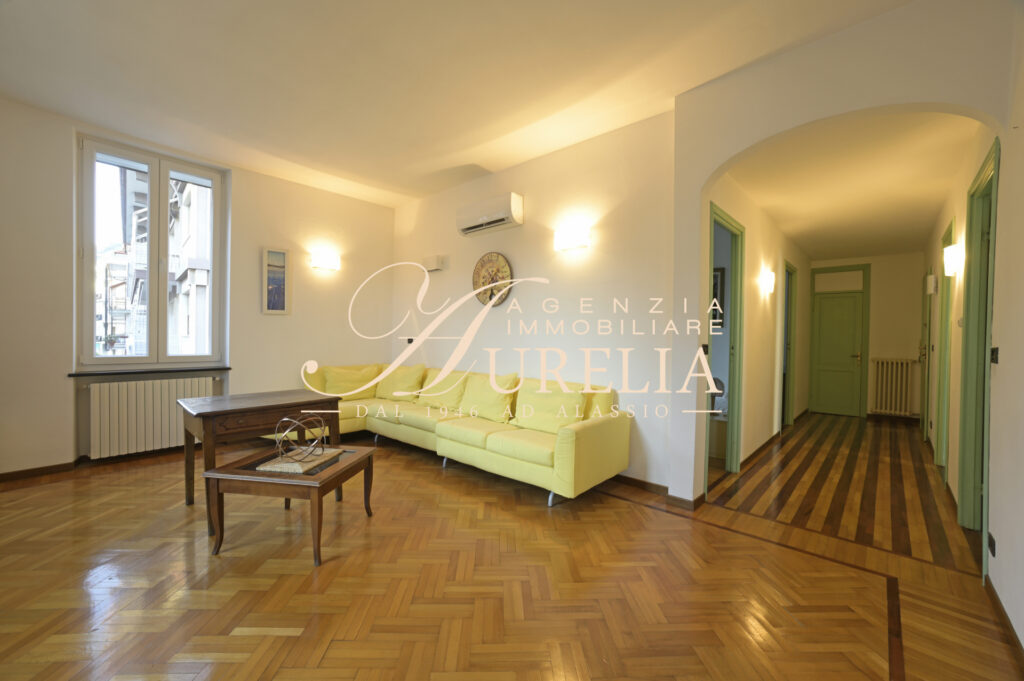 In palazzina d’epoca del 1930 a due passi dal mare e dai servizi di Alassio proponiamo in vendita questo luminoso, accogliente ed elegante appartamento. L’appartamento è collocato al secondo piano senza ascensore all’interno di palazzina signorile. L’alloggio è dotato di ingresso corridoio, soggiorno ampio e luminoso con cucina in muratura a vista e camino, tre camere da letto, comodo bagno finestrato e ripostiglio. L’immobile gode di ben tre affacci, ricevendo così molta luce durante le ore del giorno, detiene 4 balconi ( due laterali e due frontali dalla zona giorno ) , è impreziosito da un meraviglioso pavimento in parquet e da finestre grandi. Il riscaldamento è autonomo, è presente l’aria condizionata e, volendo, è disponibile anche uno spazioso box auto accanto a casa con prezzo a parte. Appartamento molto molto grazioso, ubicato in posizione strategica consentendo di raggiungere a piedi qualsiasi punto d’interesse, come la spiaggia, il budello, la palestra, la piscina, il supermercato, la ferramenta, bar e ristoranti.