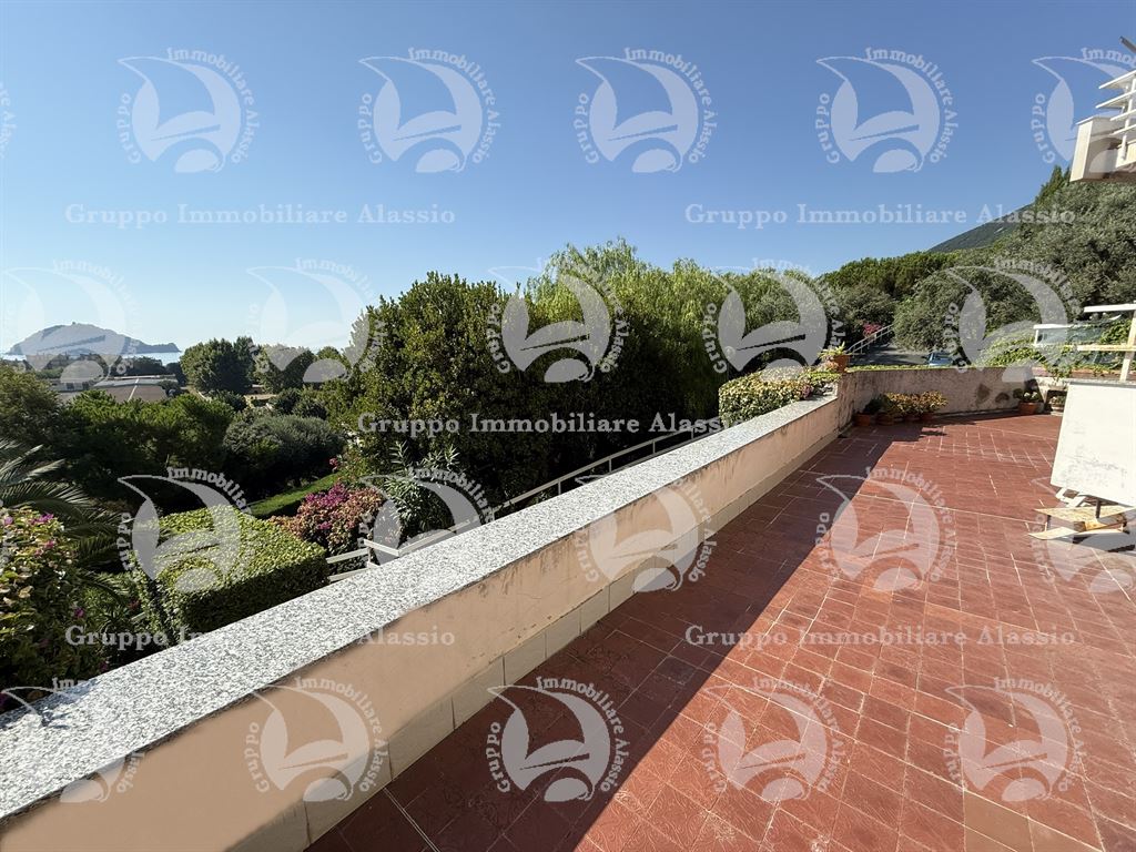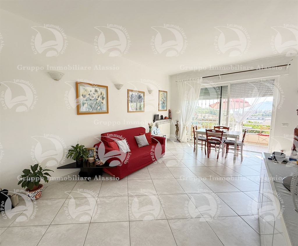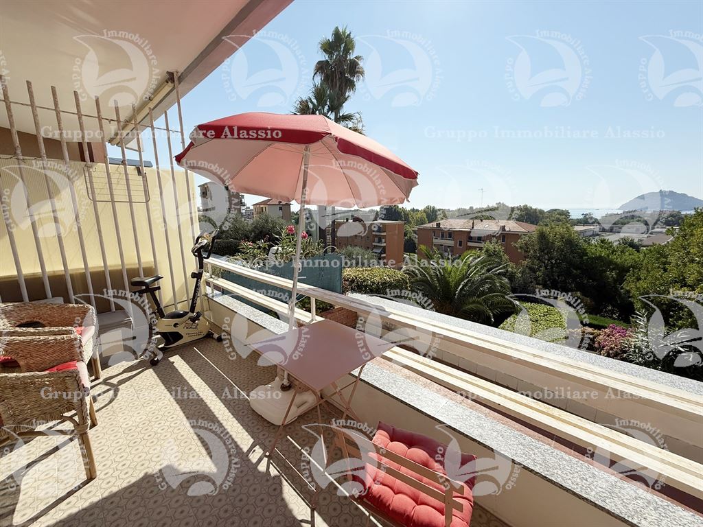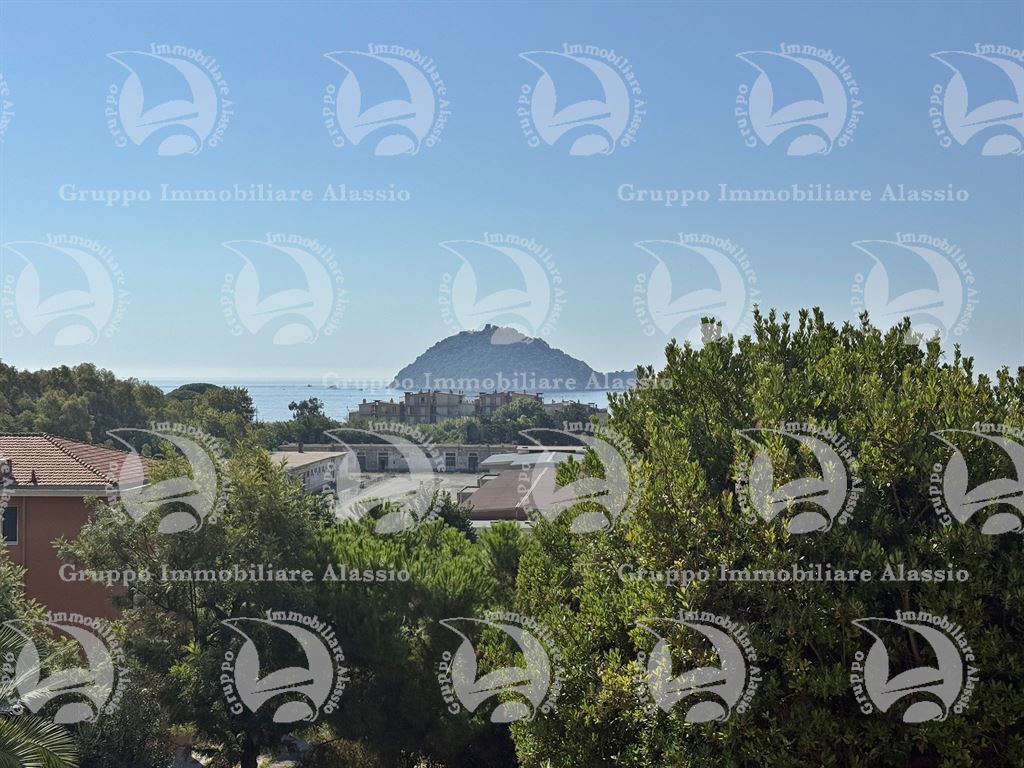L’appartamento, posto al primo piano con ascensore, si sviluppa su circa 60 m² e si compone di: luminoso soggiorno con cucina a vista, camera matrimoniale e spazioso bagno. La zona giorno si affaccia su un balcone con incantevole vista sul verde circostante, sul mare e sull’Isola Gallinara.