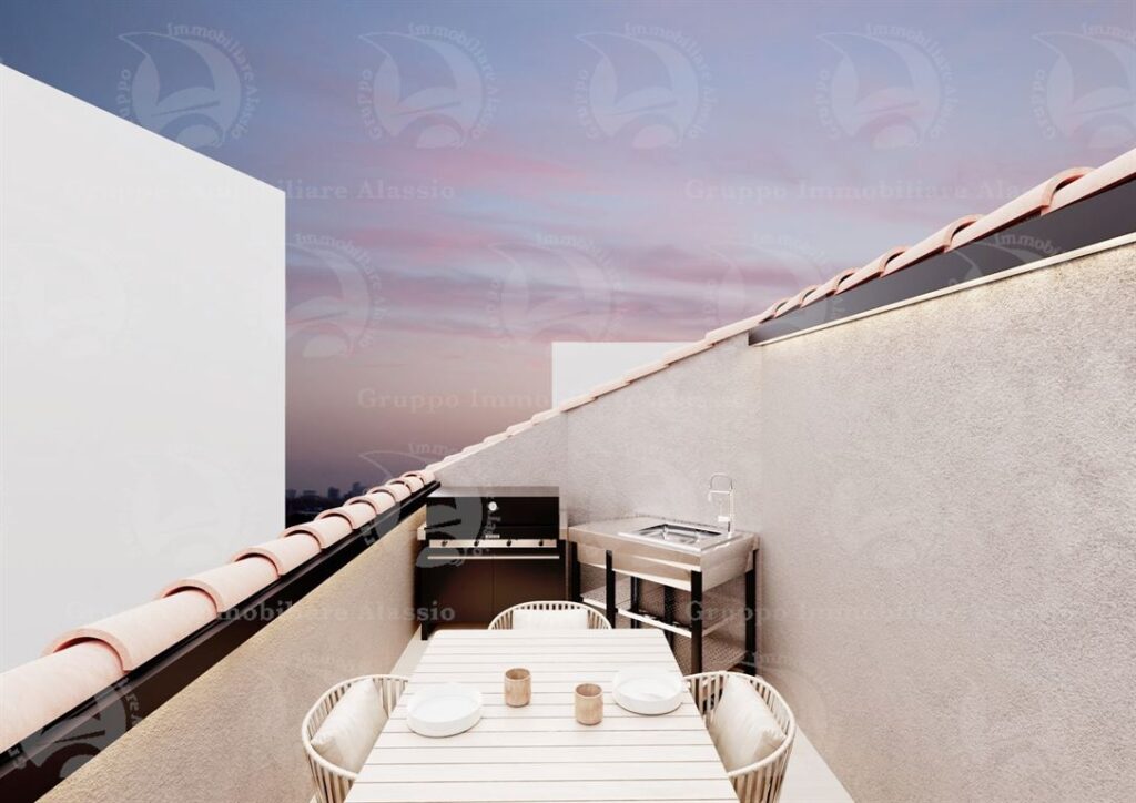Nel cuore di Alassio, a 100 metri dalla spiaggia, in una elegante palazzina di nuova realizzazione proponiamo in prenotazione questo esclusivo ultimo piano con due terrazzi abitabili.