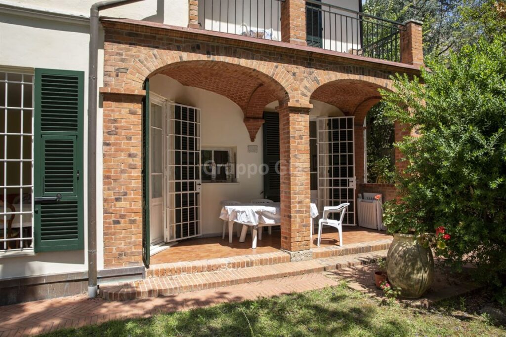 Il contesto esterno è altrettanto suggestivo: un giardino di circa 600 mq, arricchito da aiuole e zone verdi, abbraccia la villa, creando un rifugio di quiete e privacy. Completano la proprietà una dependance di 30 mq, ideale come alloggio ospiti o atelier, un garage di 20 mq e uno spazio dedicato per il parcheggio di tre automobili.