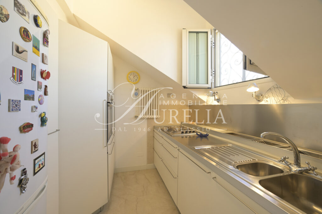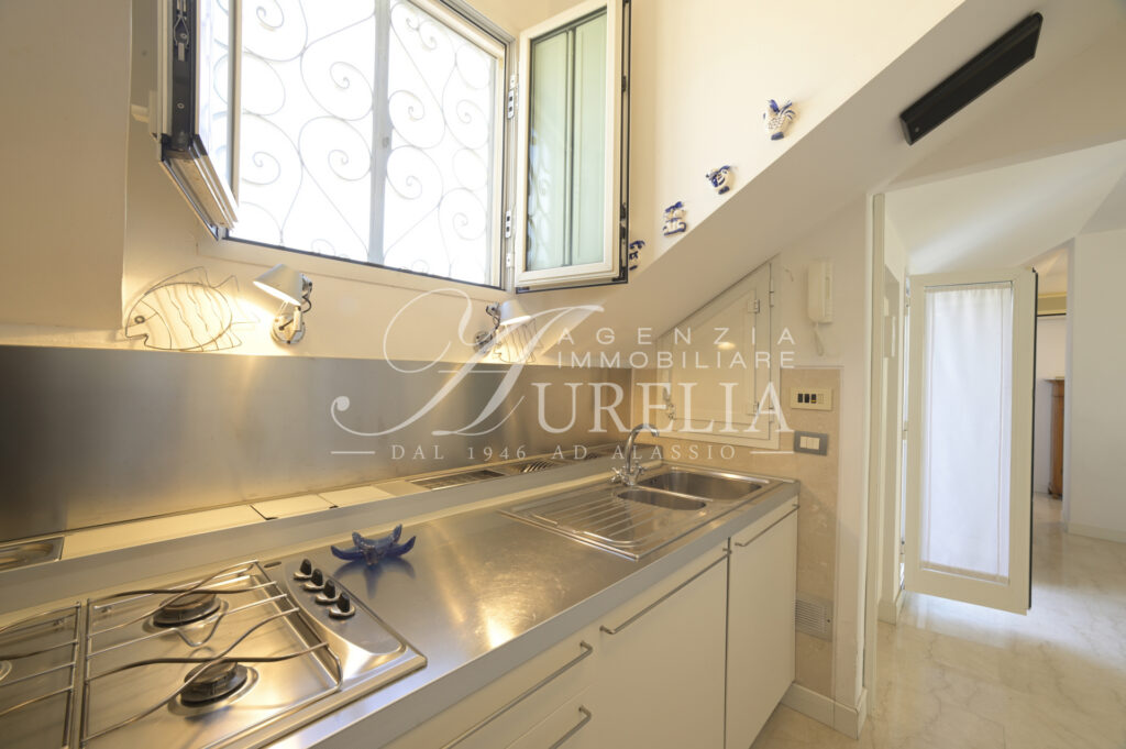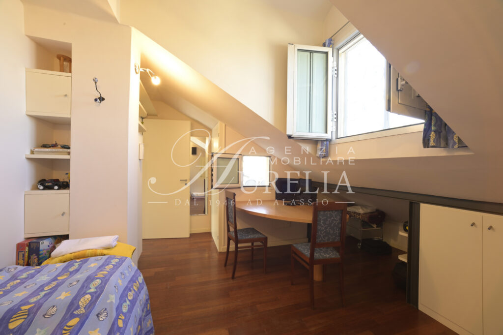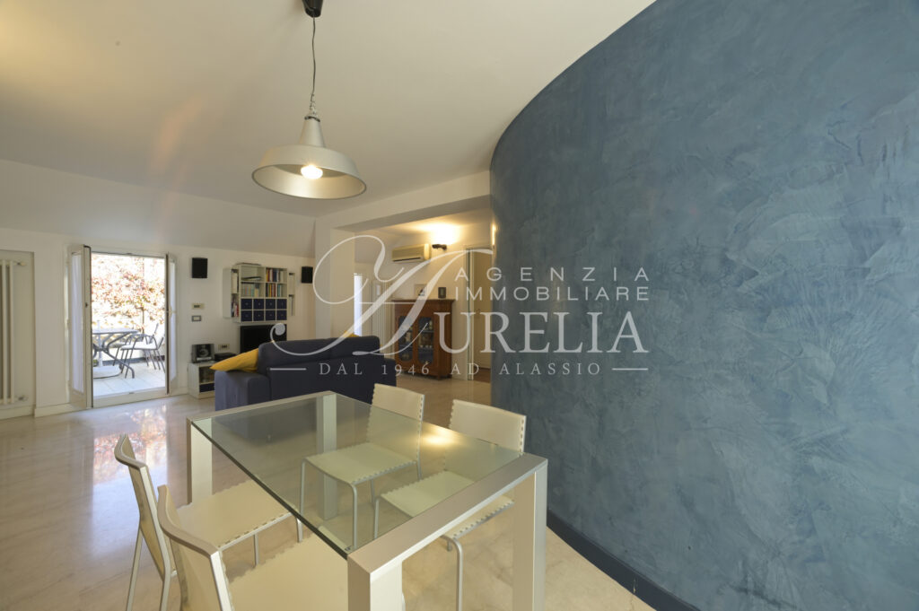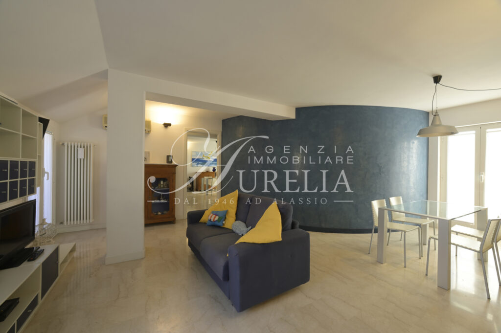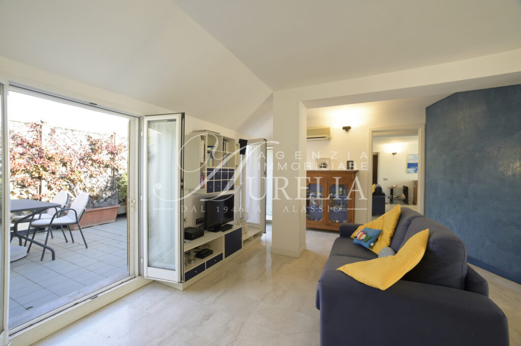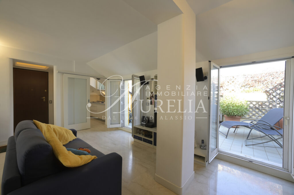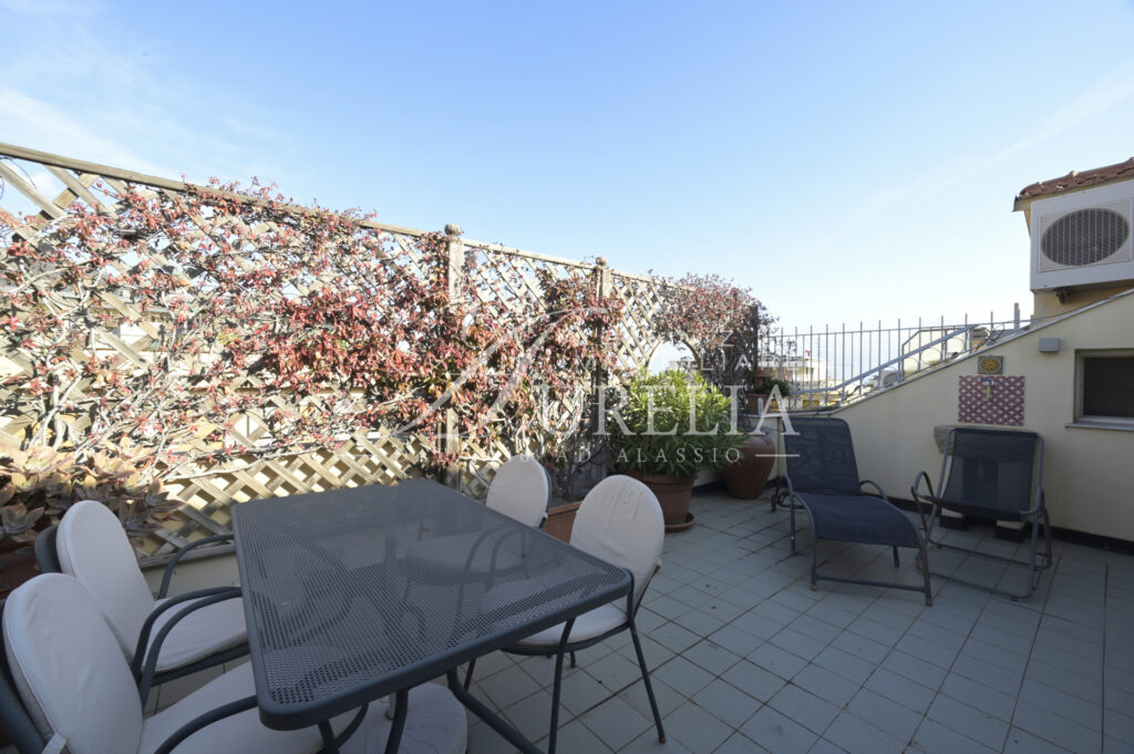 Siamo lieti di proporre in vendita, come nuova esclusiva, questo attico ubicato nel pieno centro di Alassio, in zona tranquilla e non trafficata, a soli 200 metri dalla spiaggia ed a due passi dai supermercati, ristoranti, negozi del Budello, palestre, tennis e padel, farmacie, bar , pasticcerie, edicole e tabaccherie. Collocato all’ultimo piano di edificio edificato alla fine degli anni ’60, l’appartamento si presenta in ottime condizioni e possiede un gradevole terrazzo come sfogo esterno, dove è possibile cenare, fare colazione ed ammirare una bella vista aperta sia verso il mare sia verso le colline con un certo livello di privacy nonostante la centralità. Internamente l’unità abitativa possiede un ingresso, soggiorno ampio e luminoso con due aree, cucina separata, due camere da letto, doppi servizi, entrambi finestrati, di cui uno molto piacevole con la vasca idromassaggio, terrazzo vivibile, due balconi e ripostiglio. L’immobile beneficia di un’eccezionale luminosità, grazie sia alla sua collocazione al piano alto, sia grazie alle sue due esposizioni laterali, le quali consentono di ricevere la luce solare per tutto il giorno. La posizione di ubicazione, il terrazzo, l’ultimo piano e gli spazi interni dell’alloggio sono caratteristiche intrinseche decisamente favorevoli e corrispondenti alla classica ricerca della casa al mare. L’alloggio è dotato di termo autonomo e aria condizionata.